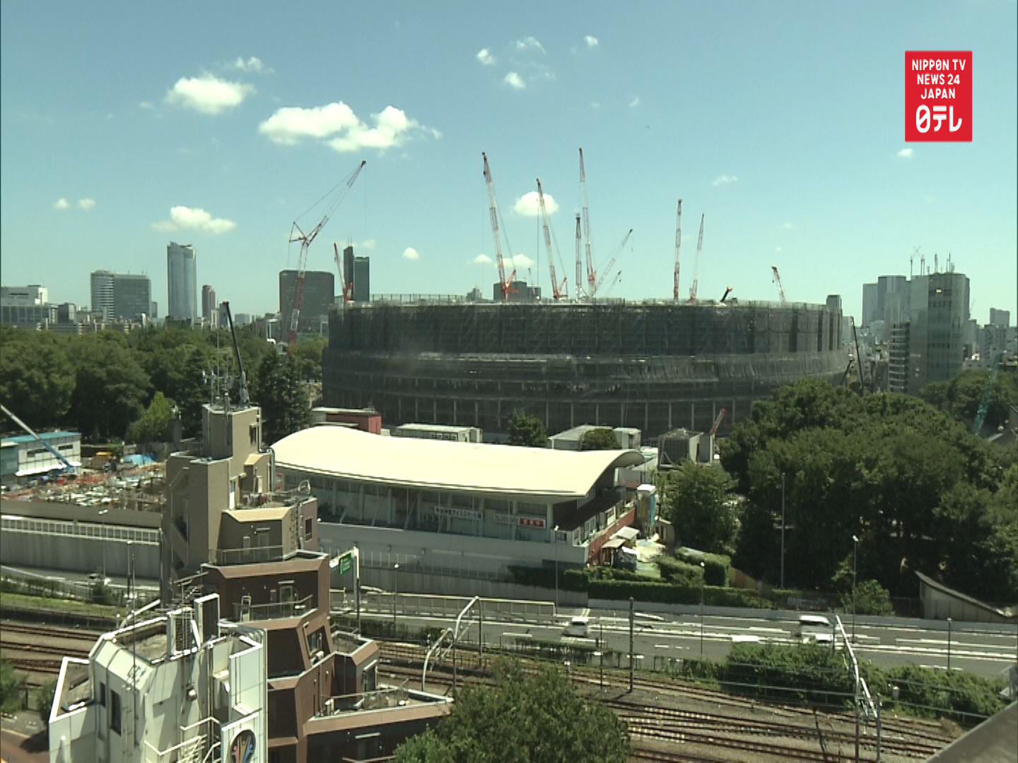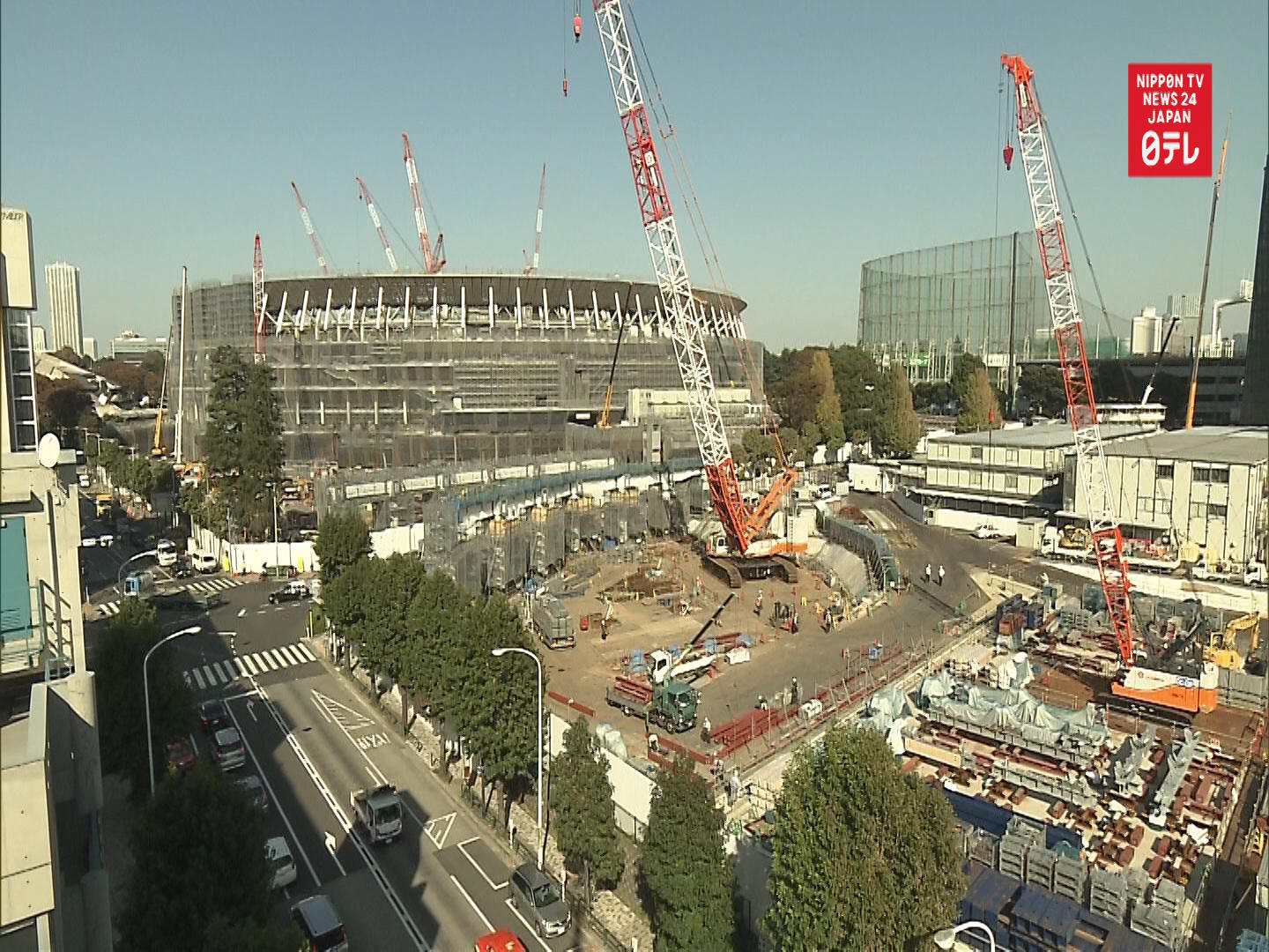 Time-lapse photography of constructing the Tokyo Olympic Stadium (2013-2019). Camera position: Apartment building in Sen...