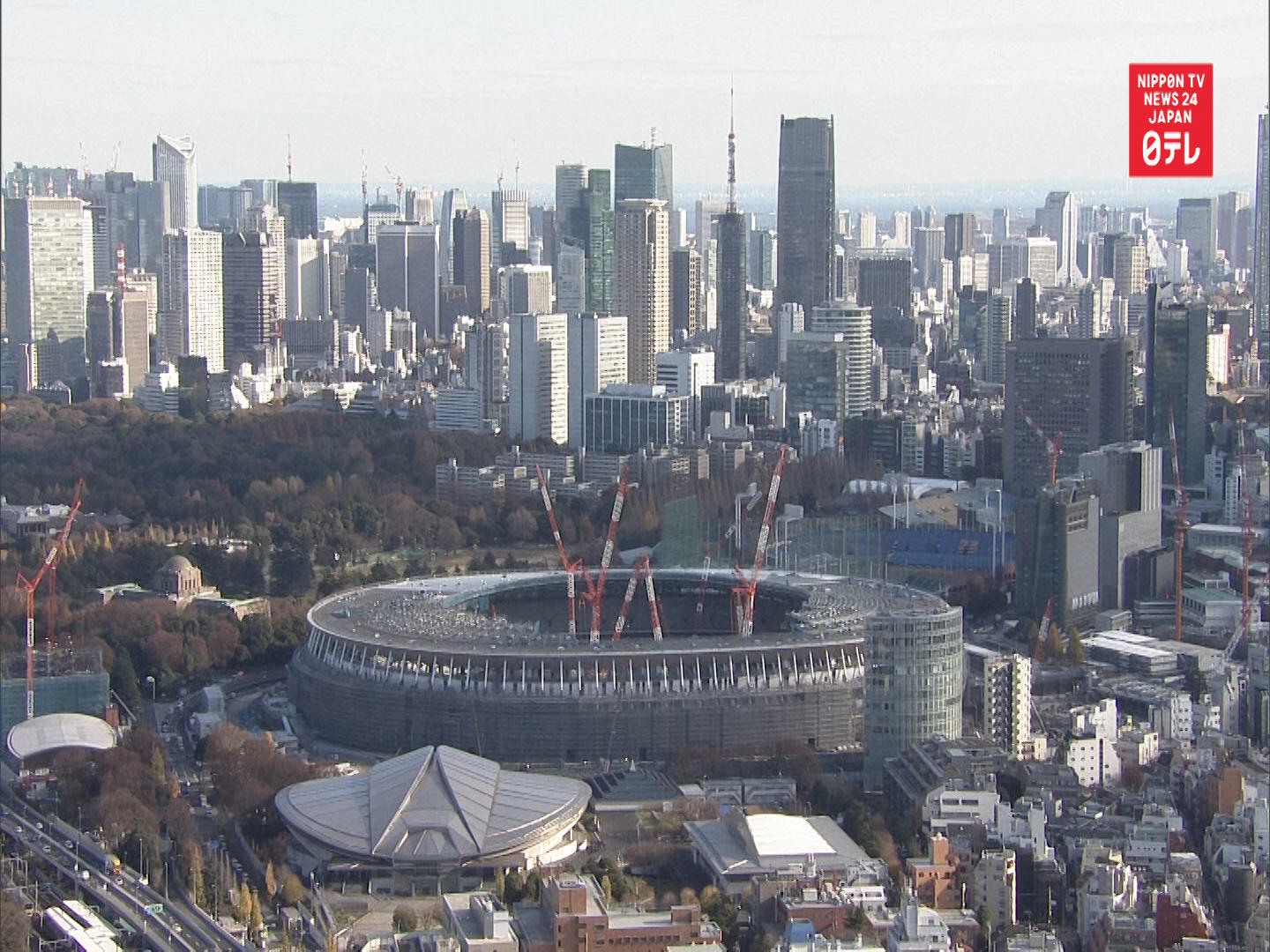 Time-lapse photography of constructing the Tokyo Olympic Stadium (2015-2019). Camera position: NTT Docomo Yoyogi Buildin...
