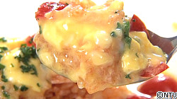 卵をよく溶き、〈B〉を加えて混ぜ、溶けるチーズを加えます。これを耐熱容器に入れ、ふんわりとラップをし、電子レンジ(600W)で1分加熱します。