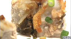 子供の頃からお母さんと一緒に料理したり、料理番組や本を見たりするのが大好きだったという河埜さん。医師という仕事と1才半のお子さんの育児の両立で、仕事の日は朝4時に起きて、食事作りをしている努力家さんなんです。そんな河埜さん、実は前大会でレシピ審査にて惜しくも敗退…。そう、今回リベンジにやってきました。しかもステージCの審査員はまさに前回落とされた脇屋シェフ!因縁の戦いとなりました。以前は食材を使い過ぎ「何が言いたいのか分からない料理」と言われたことで、今回はシンプルでありながら何かポイントのある料理で…と挑戦したのが「れんこんを使った豚肉ロール」。2つの食感を楽しめるようすりおろしたレンコンと、粗みじんにしたレンコン、そして味付けには貝の佃煮、塩昆布、すべて一緒に豚肉で巻きました。さらに2つの味が楽しめる様、特製ソースも2種類。その狙い通り、レンコンの食感、また2つのソースの味もバッチリ決まったようで、審査員の先生方からもかなりの高評価!!見事リベンジに成功し、二次予選進出です!おめでとうございます!