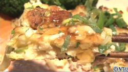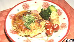 日比野さんの料理テーマはお子さんが喜んで食べてくれること。オムライスでクマをつくったり、鉄道の形にしたお弁当にしたりと様々な工夫がされています。今回のレシピの付け合わせにも切り株に見立てたマッシュポテトやきのこなど、まさにお子さんが喜びそうですよね。一見お好み焼き風のこのレシピ、実はキャベツやうどん、豚バラになんとすりおろしたじゃがいもが入っているんです。モチモチ感そしてポン酢あんかけなど高好評でしたね。見事一次予選突破です!おめでとうございます!