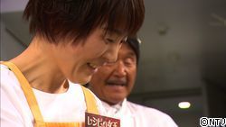 見事第5代レシピの女王に輝いた須田順子さん。準々決勝、準決勝に続いて今回も一工夫でより美味しくなる揚げ物レシピを披露してくれました。それは、家庭で一年近く前から作っているという、一番の自信作「いわしのコロッケ」。その自慢のコロッケの付け合わせには、お寿司屋さんで魚とガリを交互に食べることからヒントを得たという、ガリ入りのコールスローを用意しました。新しょうがを使った手作りのガリは、娘さんが大好きなんだそうですよ。そして極めつけは、電子レンジのみで作る特製トマトソース。これまでも特製調味料を武器に勝ち続けてきた須田さんですが、本格的なソースを審査員の方々が驚くほど簡単に作り上げました。そんな須田さんの渾身の一品を試食し、相手チームの村松さんの二男・明登くんは思わず「新発想じゃん!」と感嘆の一言。そして迎えた結果発表。須田さんの名前がコールされ、シーズン4から続いた長い長い戦いを見事リベンジで飾りました!「妥協せずに頑張る」という気持ちは、きっと娘さんたちの心に深く刻まれたことでしょう。第5代女王、おめでとうございます!女王としてのこれからのご活躍、楽しみにしています!
