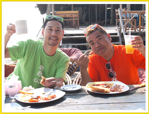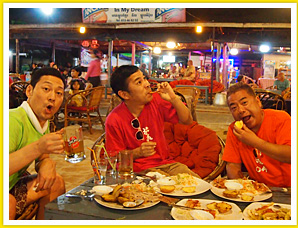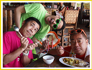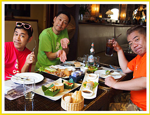 日頃の疲れを癒す3人。絶品カンボジア料理も堪能し、
