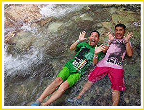 滝登りを訪れる東野と岡村。