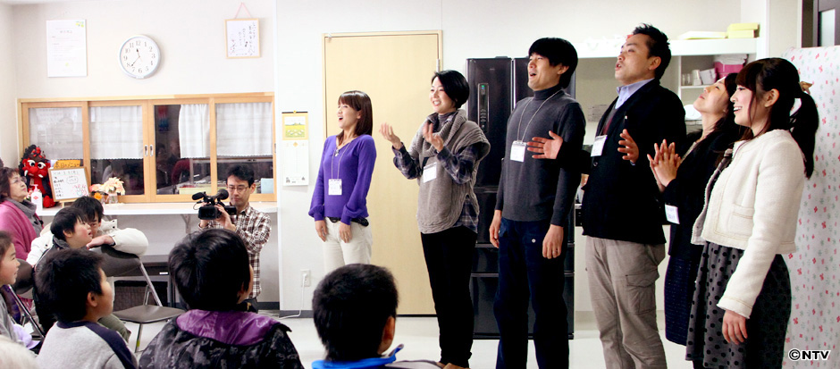 会場は仮設住宅の集会所。お年寄りやお子さんを中心に60人近くの方が集まり、発声練習や箱の中身を当てる「これなぁに」クイズなどを実施。中でも盛り上がったのは、地元局アナが釜石の方言を出題、地元の方からヒントをもらって日テレアナが答える「方言クイズ」。事前に「岩手はシャイな人が多い」と聞いていましたが、特にお年寄りたちが勢いよく手を挙げてもらい、良い意味で予想を裏切られました。