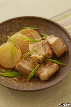 (2) 大根は両面に布目状に隠し包丁を入れる。