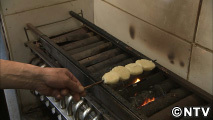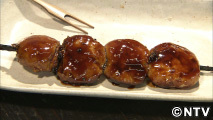 米麹と粉をこねて蒸しあげた「まんじゅう」を串に刺したものを焼き、