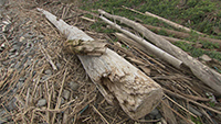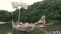 昨年の冬に作り上げた船『海賊風 帆船 男爵ディーノ号』。波や風の影響をもろに受けてしまい、まともに操縦できなかった弱点を補うべく、船の両側につけていたアウトリガーを片側のみの「シングルアウトリガー」に改良することに。その材料となるのは、島に流れ着いていた長さ9m、重さ250㎏の杉の原木。その原木を、漂着物の漁業用ロープで引っ張り、トロッコに乗せて、帆船を係留していた舟屋へ運んだ。しかし、舟屋にあるはずの帆船が見当たらない。一体どこへ消えてしまったのか…? |