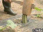 竹にキリで穴をあけて作った「竹筒」を株と株の間に刺していく。