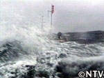 波の高さはすでにつれたか丸を覆い隠すほどだが、そんな悪条件のなかでも必死に踏ん張る長瀬。 |