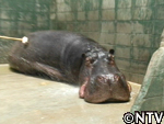 徐々に城島への警戒を解いてくれたのか、カバは安心した様子で寝そべってしまった。