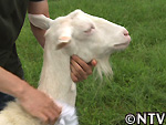 ヤギは体についた汚れなどから、ミルクに臭いがうつるため、普段からタオルで拭いて清潔さを保っている。