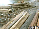 材木は潮が満ちてこない位置まで上げ、今後、少しずつトロッコで入り江に運ぶことに。