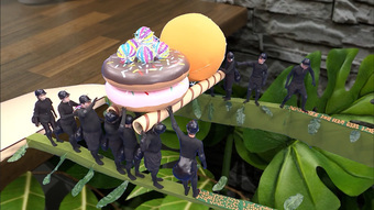 Tiny contestants, supersized challenges: where players work together as a colony to collect massive sweets for a group prize.