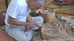 「長胴太鼓の皮張り」
