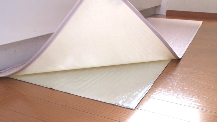 キッチンの床に段ボールを置いて寒さをブロック!