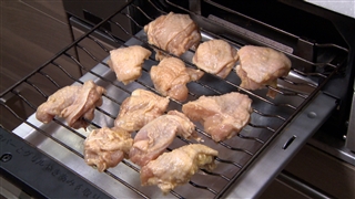 ④ 鶏もも肉をグリルの中に入れ、強火で8分焼いたら、完成!