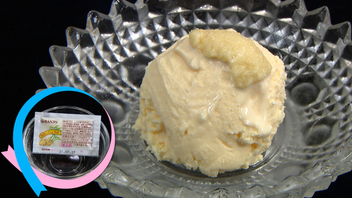 ①器にバニラアイスを入れ、おろし生姜を乗せ混ぜる