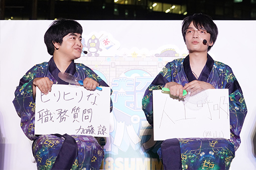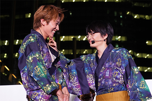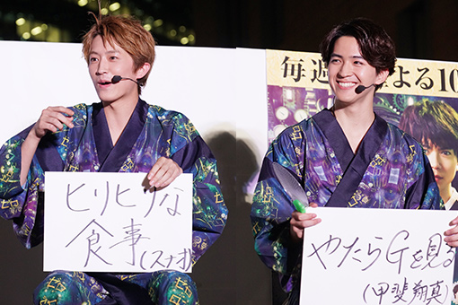他の皆さんも、「この夏、あんまり夏を楽しめてなかったので、涼しい風の中、夏を感じられています」(小関)、「ドラマの中で水槽の中に入ったりしていたので夏は感じられていたので、でも今日も夏らしい感じで夏を楽しみたいなと思います」(加藤諒)、「こんなにたくさんの人が集まってくれてると思わなかったので、とてもうれしいです」(岡山)、「今年まだ夏祭りを体験していなかったので、これが最初で最後になるのかなと思うんで、精一杯楽しみたいと思います」(杉野)、「2階席まであると思わなかったので、皆さんもぜひ楽しんで帰ってください」(甲斐)と大熱狂です。