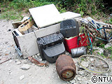 江奈湾の清掃場所は太平洋の荒波に洗われた石が連なったエリア。「このゴミは本当に漂着ゴミなんだろうか・・・」と思ってしまう冷蔵庫・レンジなど家電製品や大きなトタンなどが流れ着く場所です。これまで漂着した粗大ゴミは、処理できず放置されていました。しかも重機械が入れない場所で人海戦術での撤去しか方法はありませんでした。そこで今回、地元住民と東京・神奈川の大学生のボランティアの力を得て、普段は撤去できない大型のゴミ約1トンを撤去しました。
