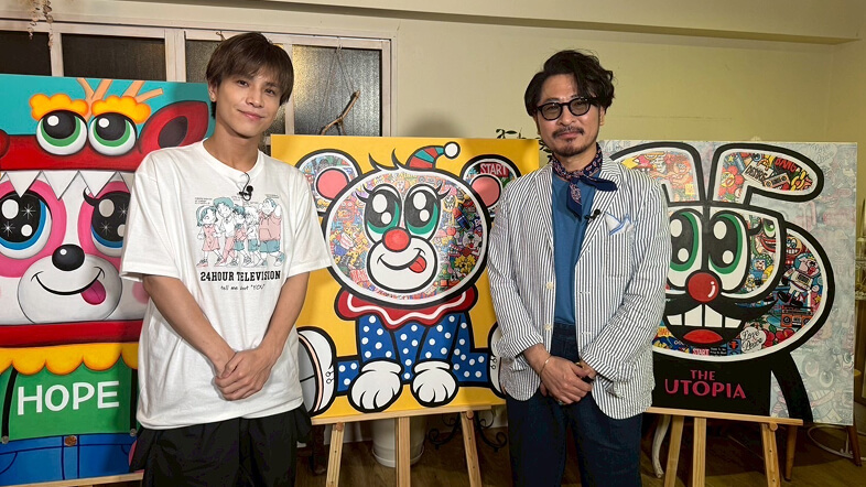 岩田剛典が生で作りあげた作品とアーティストの作品が集まり、24時間テレビ放送中にチャリティーオークションを開催します。オークションでは、希望の方に作品を購入していただき、その収益は障がい者アート支援のために寄付させていただきます。さらに今回も出品された豪華な作品群は、ひとつの巨大アートとして番組内で披露される予定です。