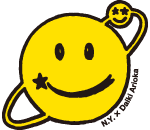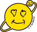 宇宙を表す「星」と、地球を表す大きな笑顔マーク。「宇宙のように大きな心を忘れず、地上でみんなが笑顔でいられるように」という願いが込められています。