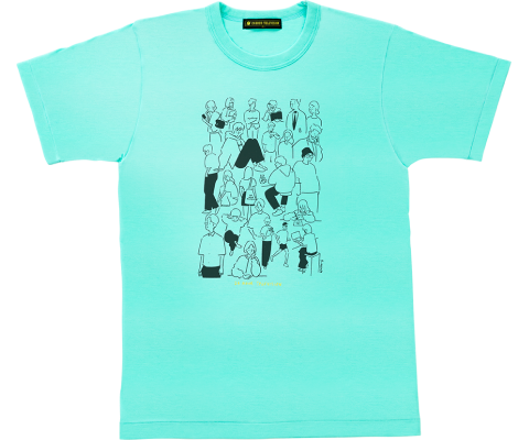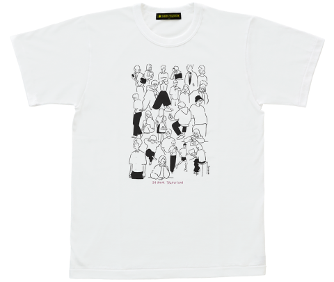 Tシャツには、「会いたい」想いを抱えながら日常を過ごす人物達がシンプルなラインで描かれている。メインパーソナリティーを務める「ジャにのちゃんねる」のメンバー・二宮からの「24時間テレビを象徴する地球のマークを入れたい」というリクエストに応え、よく見ると、カフェで誰かを待つ人物のマグカップにさりげなく地球マークが入っている。これには、「Tシャツの中心に描かれた小さな地球」から、今回のテーマ「会いたい!」という想いが周囲に伝播していくといった長場のイメージが込められている。