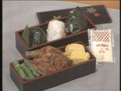 卵焼き 鶏のから揚げ アスパラのサラダ 三角おにぎり