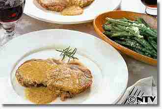 ソースは煮汁に浮いた油を除いてから、裏ごします。生クリームのソースに比べてびっくりする程さっぱりしています。