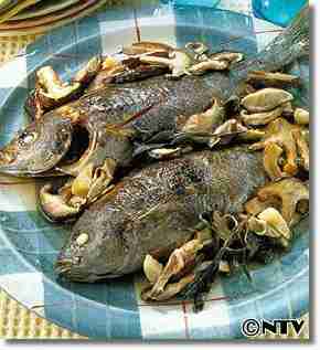 椎茸が旨みを吸い込んでおいしくなっているので、いさきに煮汁をつけながら、椎茸と一緒に食べます。