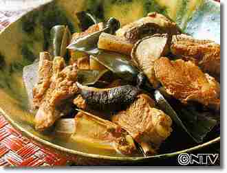 (煮汁をさっぱり味に仕上げる為)昆布と椎茸はつけ汁も加えて煮込みます。
