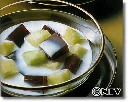 デザートのゼリーにはメロンを合わせていますが、ももやお好みのフルーツを入れると良い。