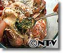 鶏肉は皮を少しはずすようにして、身との間にマリネード液をたっぷり入れてまぶす。皮の表面にぬるだけよりも、焦げつかず香りもよい。