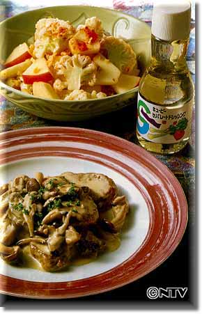 サラダのりんごは色が変わらないうちに、切ったらすぐにドレッシングとあわせます。