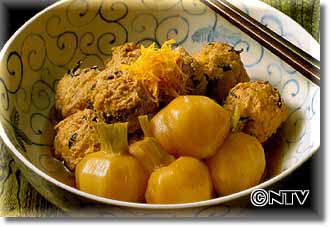 だし汁の昆布は沸騰直前に取り出します。鶏肉を煮る時、昆布だしを使うと鶏肉の味がいきて、おいしくなります。