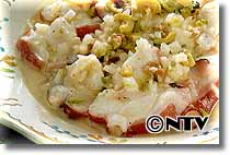 たこのマリネは食べる直前にマリネ液であえて 器に盛ります。