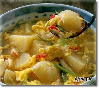 かにの身は冷凍でも缶詰でもどちらでもよいですが、あまり長く煮すぎないこと。