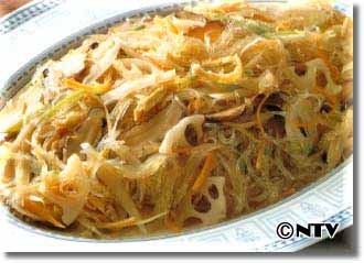 味出しは油揚げと干し椎茸です。戻し汁も大切です!捨てないこと。春雨は固めにもどします。出来上がりにごまや七味をふってもよい。この炒めものは中華のようですが長崎料理だそうです。これに牛肉のみそ漬け焼きを添えればお献立はバッチリですね。
