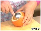 1、実と外皮の間に大スプーンを入れくりぬく。
