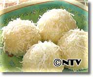 ココナッツもちのもちは蒸し上がったら熱いうちにあんを包み丸めること。(固くなってしまいますよ)