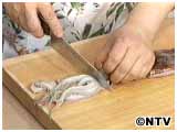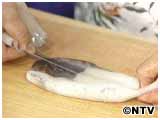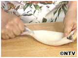 目の下に包丁を入れます。