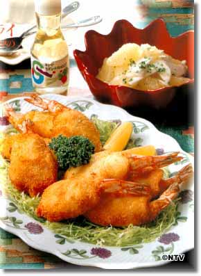 じゃが芋は熱いうちにフォークでつぶし、調味料と具を合わせ味をなじませ冷ましておきます。衣をつけたらすぐに揚げず5分程おいて落ち着かせます。フライパンに油を1cm位入れ、ポテトサラダの側から揚げこんがり色づいたら返しえび側は3分くらい火を通します。