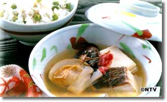 鯛とはまぐりの桜蒸し 青豆ごはん