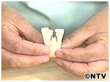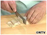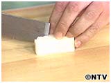 2)外皮を厚めにカットして、拍子木にします。