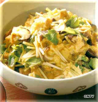 椎茸は軸の部分も刻んで入れます。椎茸の代わりにしめじやえのきがはいっても、、。必ず卵は流し入れる直前にほぐすこと。(コシがなくなってしまうので)卵に水溶き片栗粉を加えると口あたりよく仕上がります。