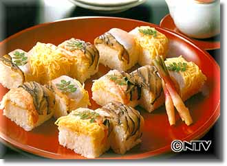 3)すし飯を棒状にしてのせます。