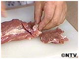 ヒレ肉は、切り込みを入れて、切りはなします。