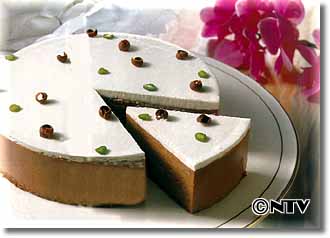 仕上げのコツはしっかり冷やしたクッキー生地の表面に汗をかかせてからムースを流し入れること。こうすると生地とムースがピッタリくっつきます。