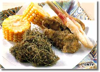とうもろこしは実が透明になったらひきあげます。蒸したり、ゆでたりするよりも早くできてしまいます(鍋に粒が残っていたら必ず取り除いてから次ぎを揚げはじめること)。