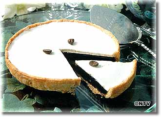 パイ生地にチョコレートを流したら必ず冷凍庫で10分位冷やし固め、ゼリー液を流す前に室温にだして汗をかかせること(これがポイント)。